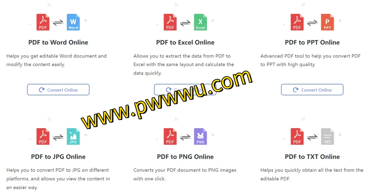 - 支持PDF与多种办公文档格式互转