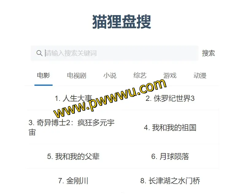 猫狸盘搜 这是一个专注于阿里云盘资源检索的服务平台。用户无需注册或登录,即可直接进行资源查找。 主要特点 专注于阿里云盘资源检索 免登录直接使用 操作简单便捷 分享地址: https://www.alipansou.com/