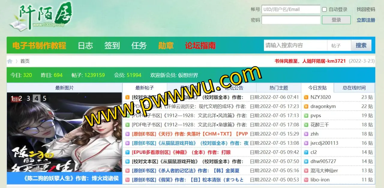 阡陌居是一个专注于电子书制作与分享的交流社区。该平台以其精致的电子书成品而闻名,用户需要完成注册并登录账户后,方能使用论坛的各项核心功能。