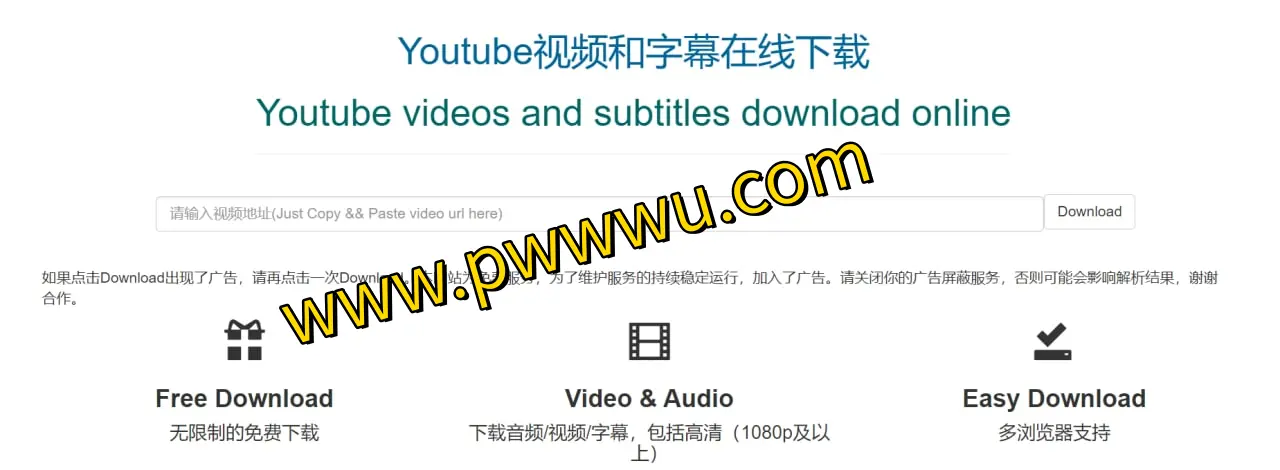 该在线平台致力于提供YouTube视频资源的下载服务,用户能够自由获取视频、音频及字幕文件。
