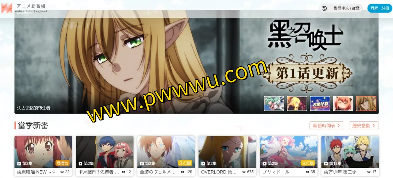 这是一个提供最新动画剧集在线观赏的网站,界面与字幕均采用繁体中文。根据网站设计风格与语言习惯推测,开发团队可能来自台湾地区。