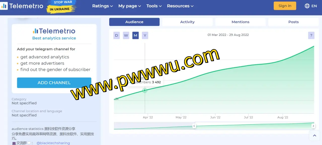 Telemetrio 该平台专注于提供各类频道的详细数据分析服务。 核心功能 监控频道订阅者数量及其动态变化趋势 统计内容查看率与内容更新频率 支持查看单条内容在不同时段内的浏览人数与分享数据 提供按小时或日期维度的深度数据分析 分享地址: http://telemetr.io/