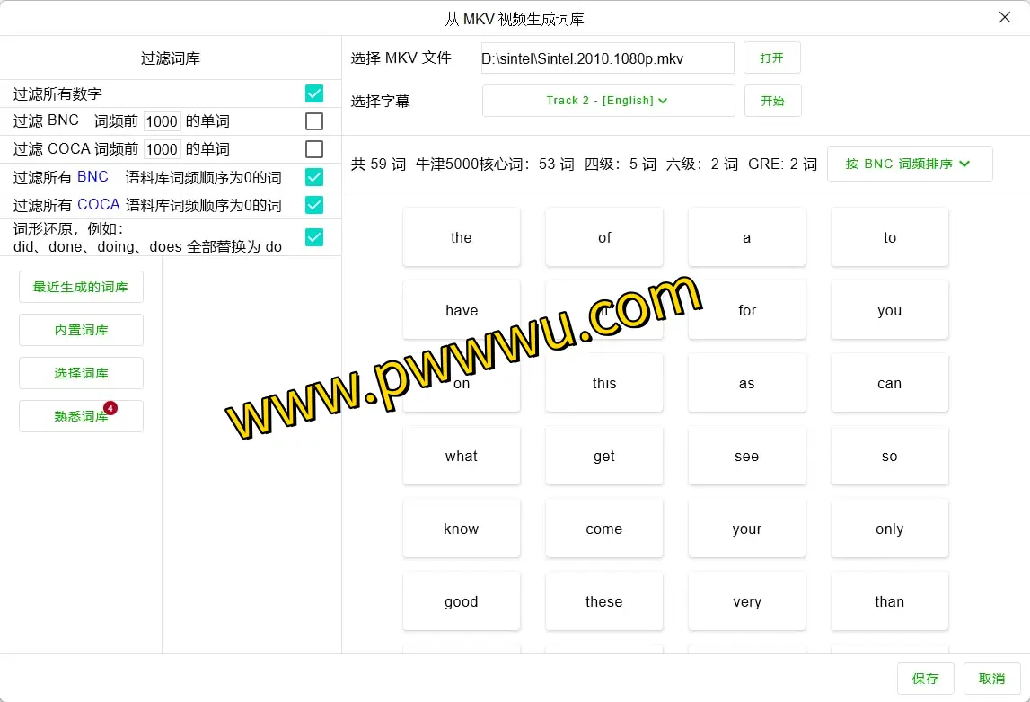- 智能词库生成:自动从字幕中提取生词,过滤已熟悉词汇。