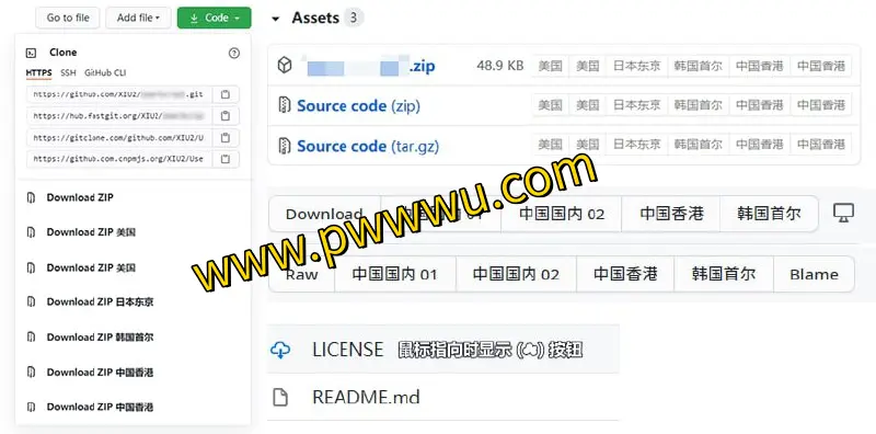 通过脚本管理器安装即可生效,访问Github时会自动加载加速功能。下载文件时选择带有加速标识的选项即可体验提速效果。