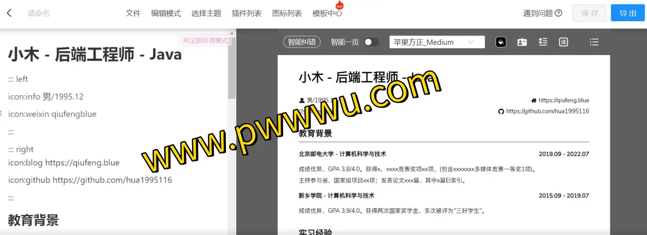 木及简历是一款依托Markdown语法的线上简历编辑平台。它内置了数十款设计精良的简历版式,用户能够轻松地制作出专业且外观出众的求职简历,从而为求职过程提供便利。