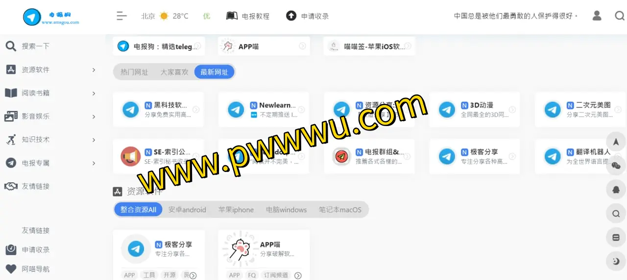 电报狗是APP喵平台推出的一个导航类网站,主要功能是整理和展示各类电报频道与群组信息。网站对收录内容进行了分类归纳,涵盖了资源软件、电子书籍、影音娱乐、知识技术以及电报专属内容等不同领域。如果你拥有自己的电报频道,也可以通过网站上的申请通道提交信息,争取被收录展示的机会。