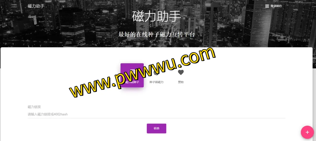 磁力助手是一个专注于磁力链接与种子文件互相转换的在线服务平台。整个页面设计极为精简,仅提供磁力转种子和种子转磁力两大核心功能,操作直观便捷。