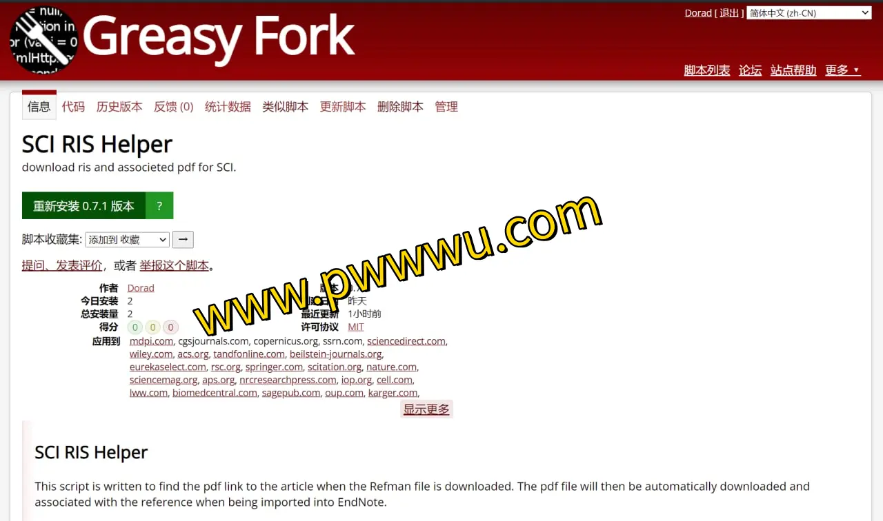https://greasyfork.org/en/scripts/434310-sci-ris-helper-endnote-scihub