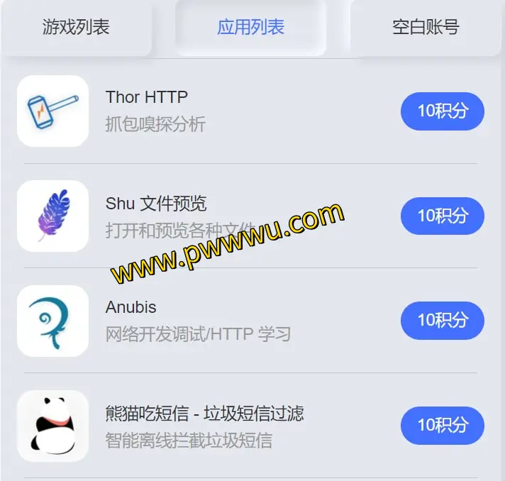 新用户注册即可获赠30点积分,每个应用仅需消耗10积分,初始积分足以下载三款应用程序。此机制特别适合需要获取Shadowrocket、Quantumult X、Stash等代理工具的用户。平台还提供了多种免费赚取积分的途径,方便用户持续获取更多应用资源。