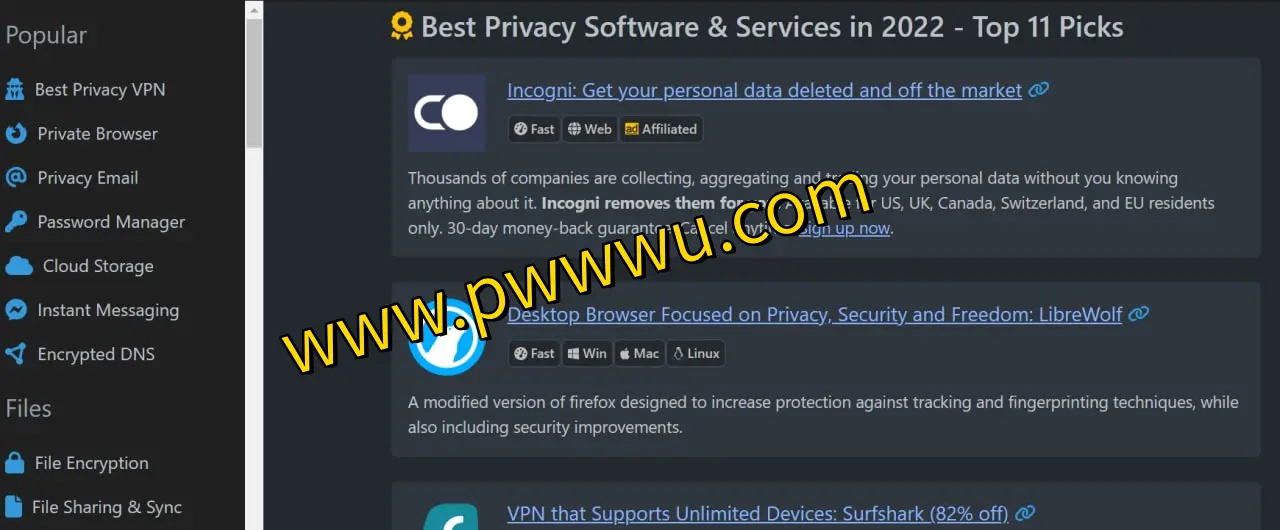 该平台致力于搜集各类隐私防护工具,以应对日益严峻的全球监控态势。站内汇集了多款专业级防护软件,其中部分为付费产品,适合对个人信息安全有较高要求的用户参考选用。