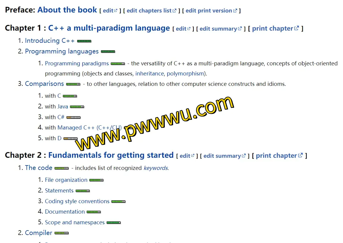 本网站提供一套完整的C++语言学习指南,以分章节的方式组织内容,适合编程新手入门使用。教程采用英文编写,让学习者在掌握编程技能的同时,也能提升英语阅读能力,实现语言学习和编程教育的双重收获。