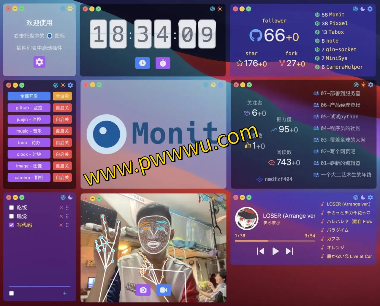 Monit是一款开源且完全免费的桌面增强工具,它通过插件化的方式为用户提供多样化的桌面小组件服务。