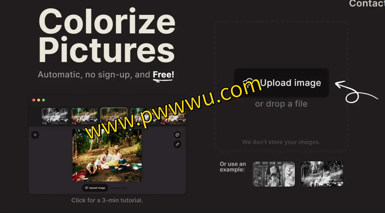 该平台运用智能算法,自动为黑白影像添加颜色。网站内附有一个简短的三分钟操作指南,方便用户快速上手。