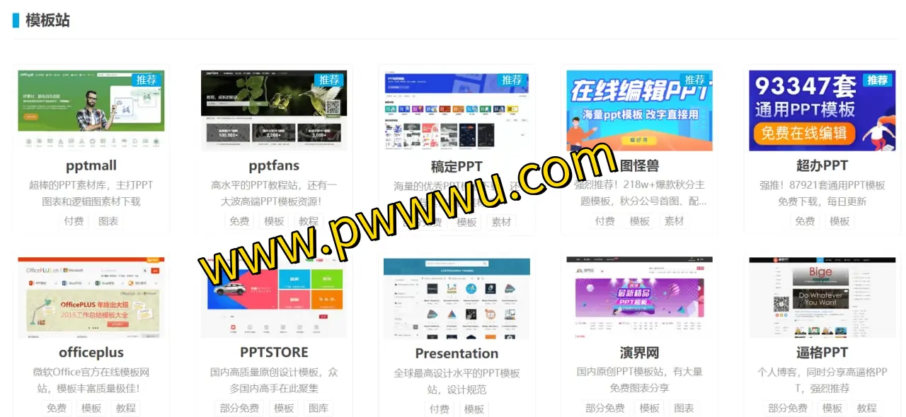 该站点汇集了大量提供PPT模板的在线资源。每个被收录的平台都明确标注了其服务模式,例如完全免费、部分内容免费或需要付费使用。同时,站点还为每个资源提供了简短的说明与使用评价。众多备受推荐的免费PPT模板网站都能在这里找到。