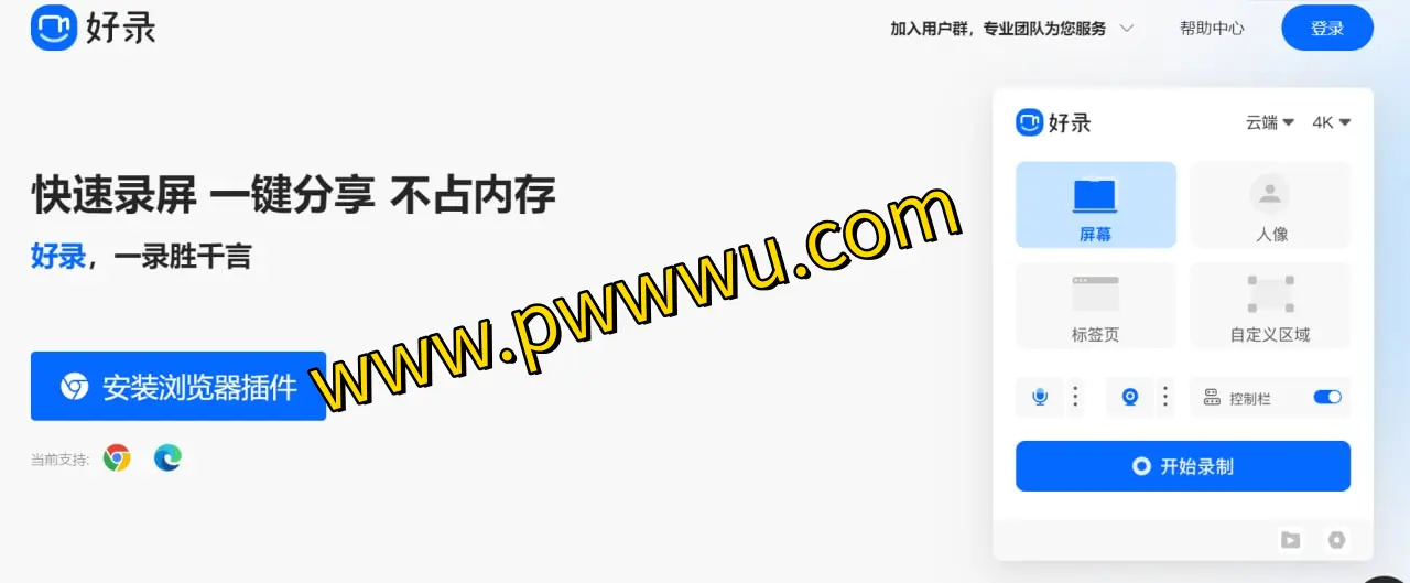这是一款无需付费的屏幕录制工具,能够直接在浏览器中捕捉画面,最高可实现4K超清画质。当前适配Chrome与Edge浏览器扩展程序。
