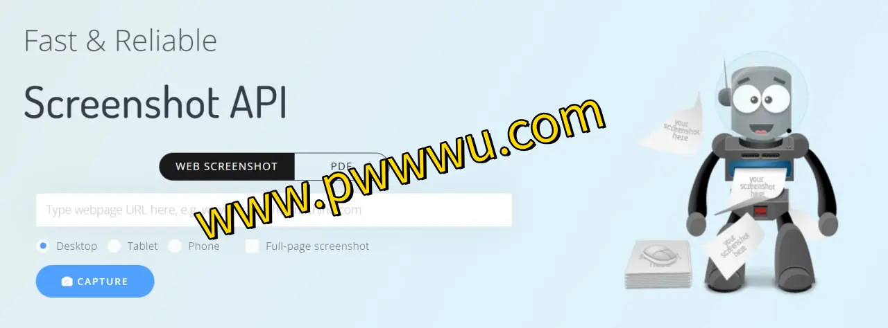 这是一个简单实用的网页截图生成工具,只需输入目标网址即可快速将网页内容转换为图像,并支持导出为PDF文档。用户可根据需求选择桌面端、平板或手机端的显示模式进行截图,同时还能获取完整的长页面截图。