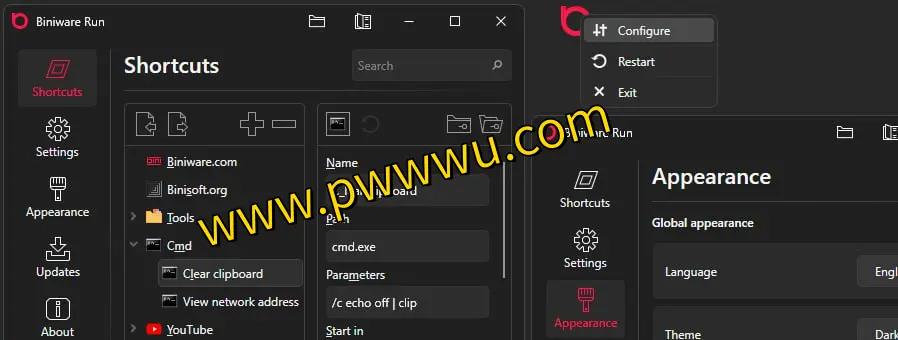 BiniwareRun 是一款完全免费的快速启动软件,操作直观简便。用户只需将常用程序、文件或文件夹拖入软件界面,即可将其加入启动菜单,无需在桌面创建多余图标。