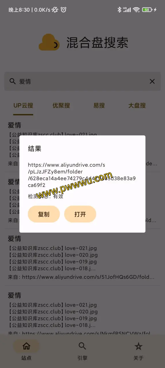 本工具专注于网盘资源检索服务,能够同时调用多个资源搜索站点进行查询。系统会自动展示可用的资源地址,并实时验证链接状态。