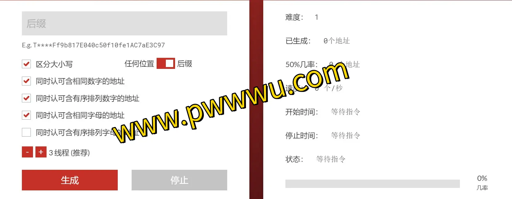 Rare TRX波场靓号生成器是一款基于浏览器的Web3工具,专门用于创建个性化的TRC20地址。用户只需输入心仪的前缀或后缀字符,点击生成按钮即可快速获得专属地址。