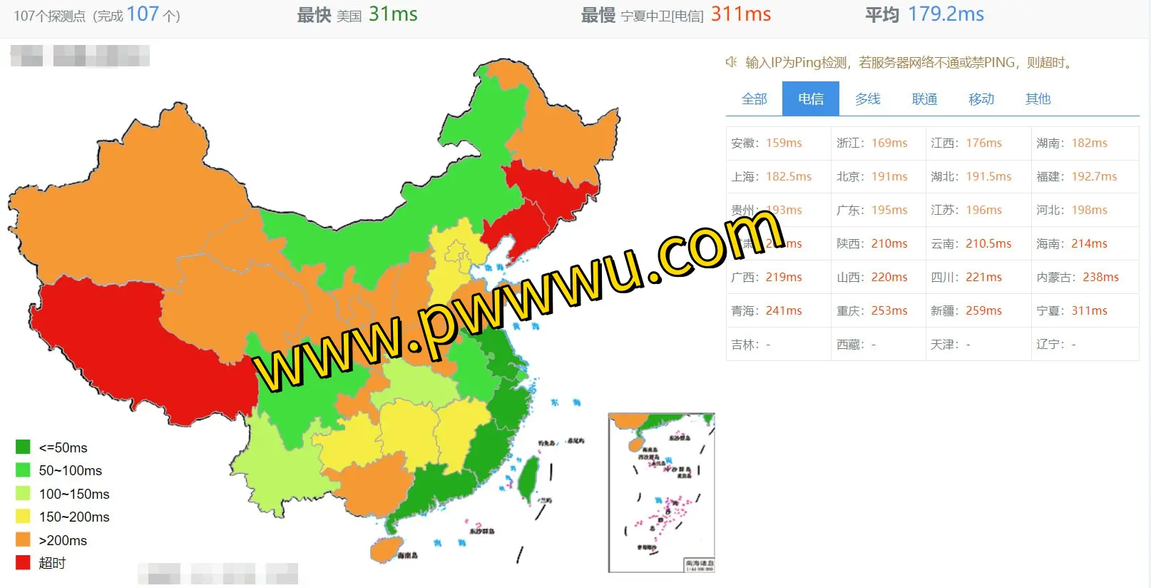 Chinaz平台推出的Ping检测工具,能够对VPS的IP地址进行国内及国际链路质量分析。该工具可精准检测国内各省市及不同网络服务商的连通状态,为网络质量评估提供可靠依据。