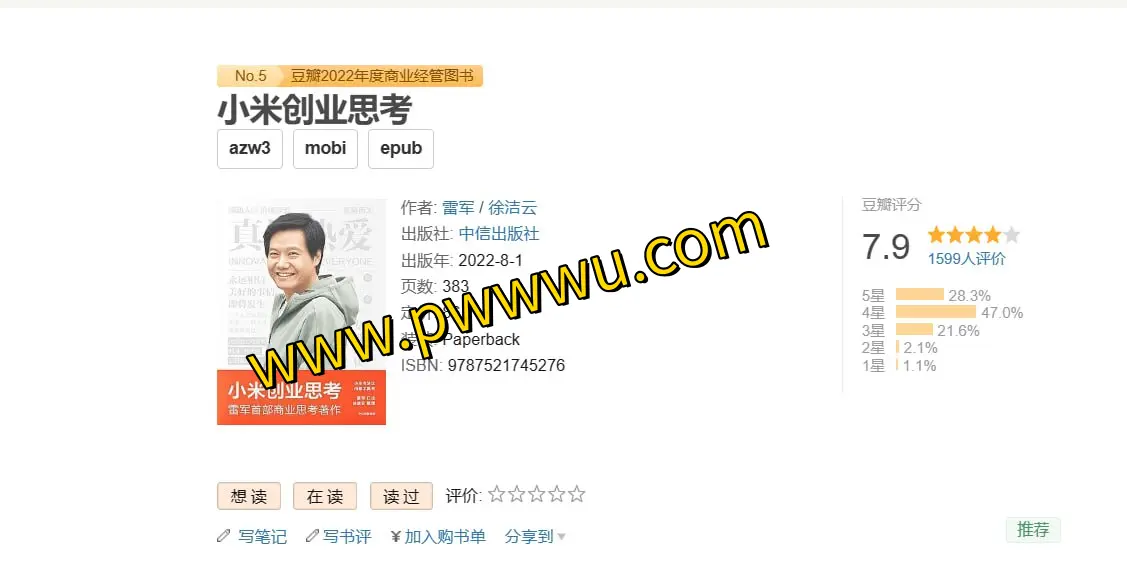 安装该工具后,当您在豆瓣平台搜索书籍时,会在书籍信息区域看到新增的下载选项。系统会提供三种常见电子书格式:azw3、mobi和epub,用户只需点击对应格式即可完成下载操作。