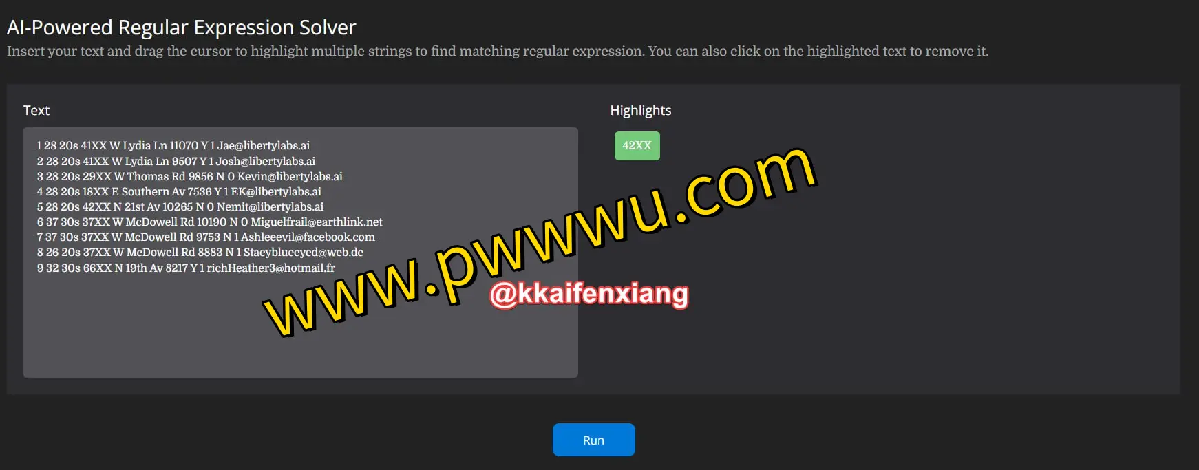 该平台专注于通过人工智能技术实现正则表达式的自动化构建。用户仅需选定目标数据样本,系统即可智能生成匹配的正则表达式模板,并提供多样化的数据提取方案。