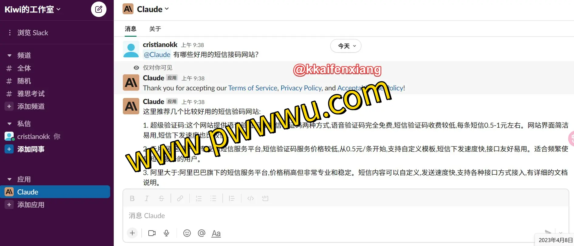 网站名称:Claude in Slack