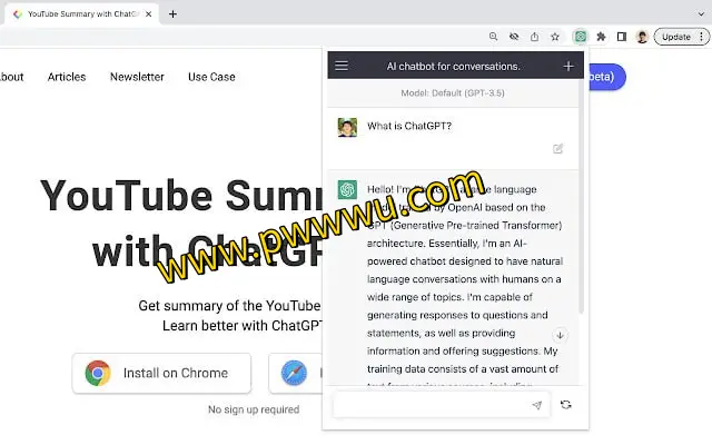 这款名为ChatGPT Chrome Extension的浏览器插件,能够帮助用户在侧边栏便捷地调用ChatGPT功能。