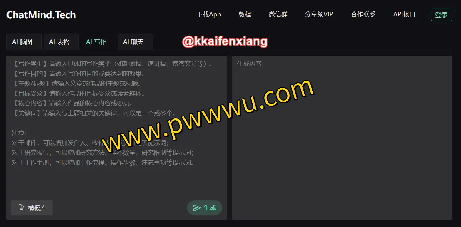 该平台是一款集成多种智能服务的在线工具,主要涵盖智能思维导图生成、结构化表格处理、文本辅助创作以及即时对话交互四大模块。