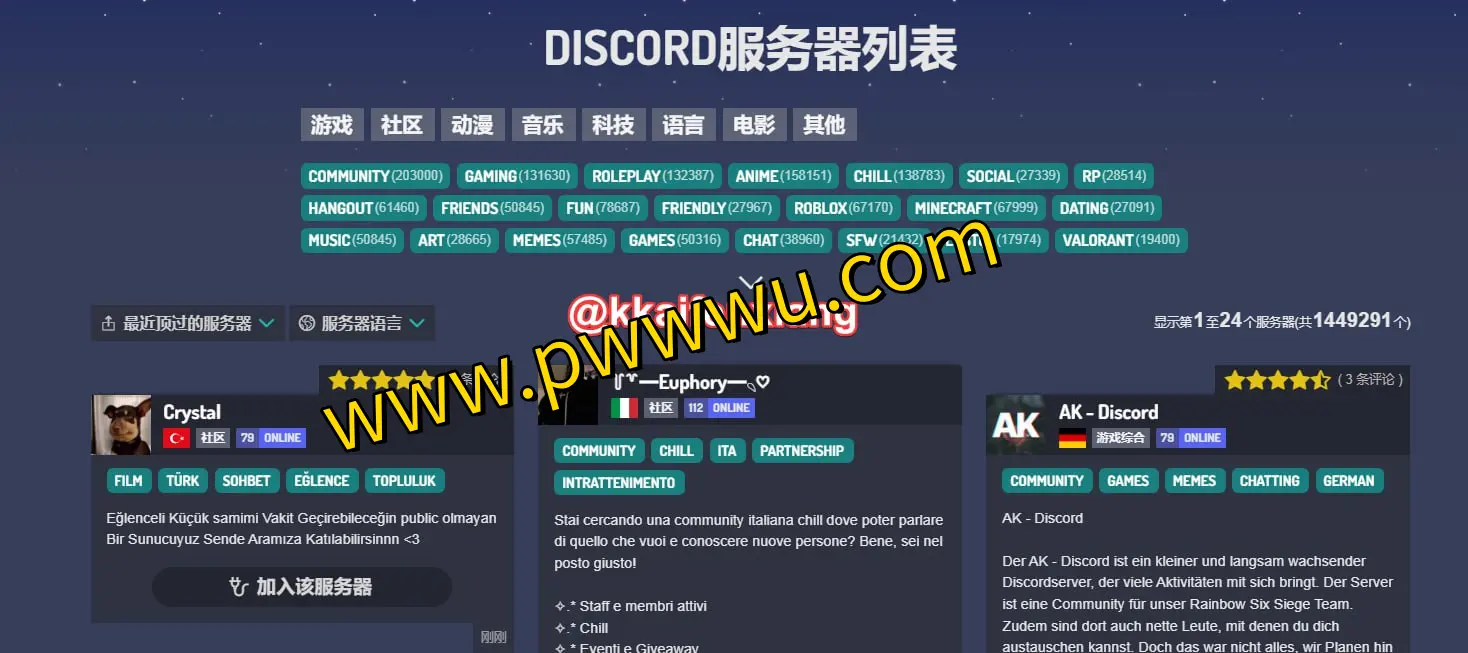 DISBOARD是一个专注于Discord社群的搜索引擎平台,该平台特别提供了中文搜索支持。