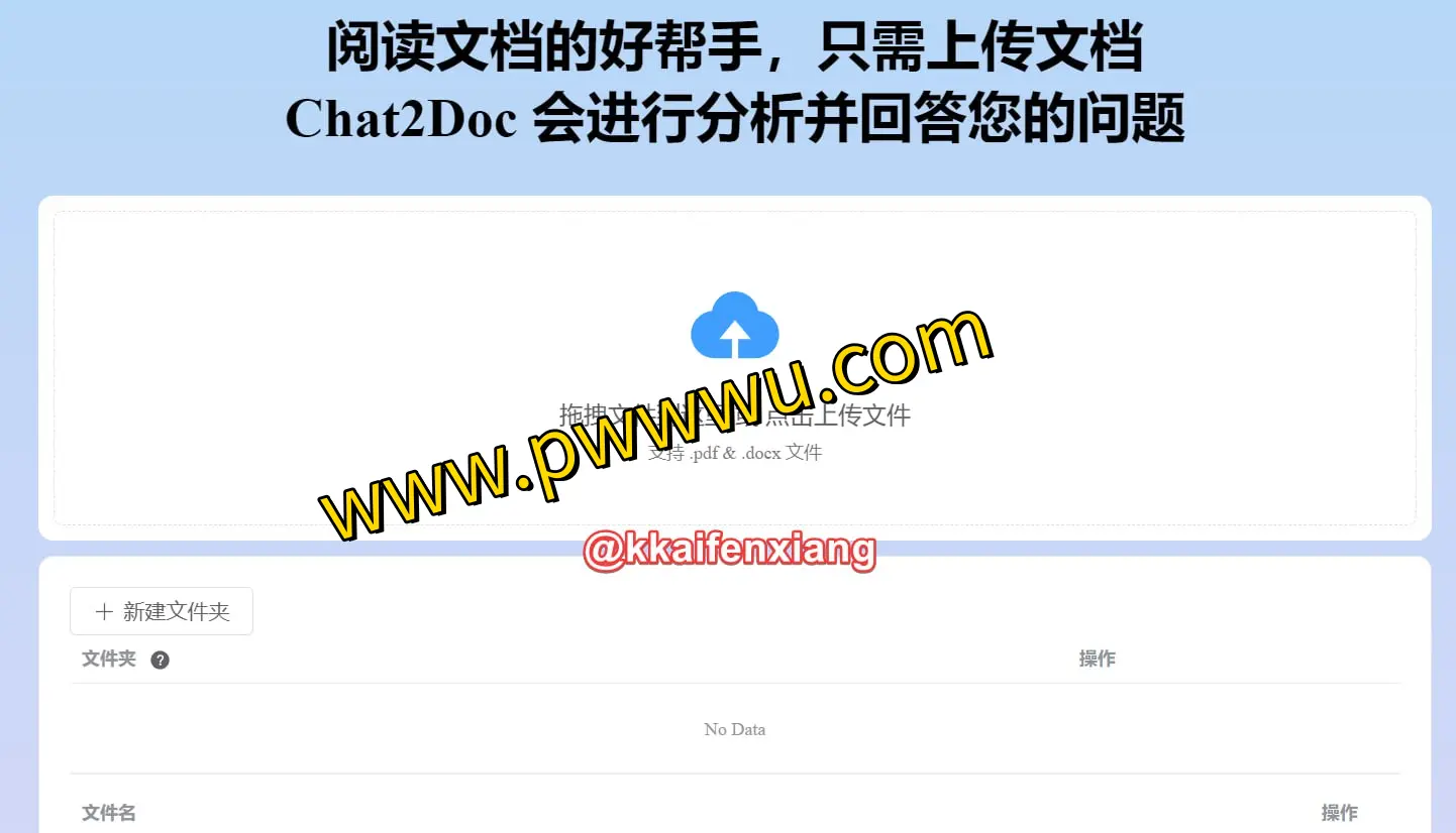 该平台专注于通过智能交互方式协助用户处理文档内容。使用者上传文件后,系统将自动解析文本内容,并提供精准的问答服务。目前兼容PDF与DOCX两种常见格式,所有上传数据仅会在服务器保留七天。