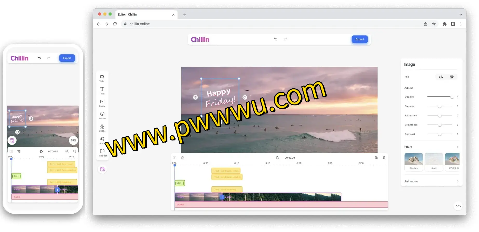Chillin是一款便捷的在线视频编辑工具,能够实现快速导出视频,不设分辨率限制,完全免费且不添加任何水印。该平台注重用户隐私与流量优化,支持本地编辑,无需上传原始素材即可完成处理。