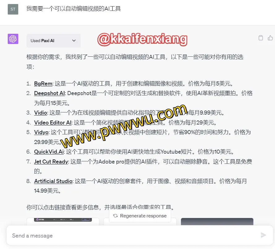 与传统搜索引擎不同,Paxi AI不仅提供工具列表,还会详细说明每款工具的使用方法和适用场景。比如当您需要视频自动编辑方案时,它会推荐多款专业工具,并解释各自的特点和操作流程。