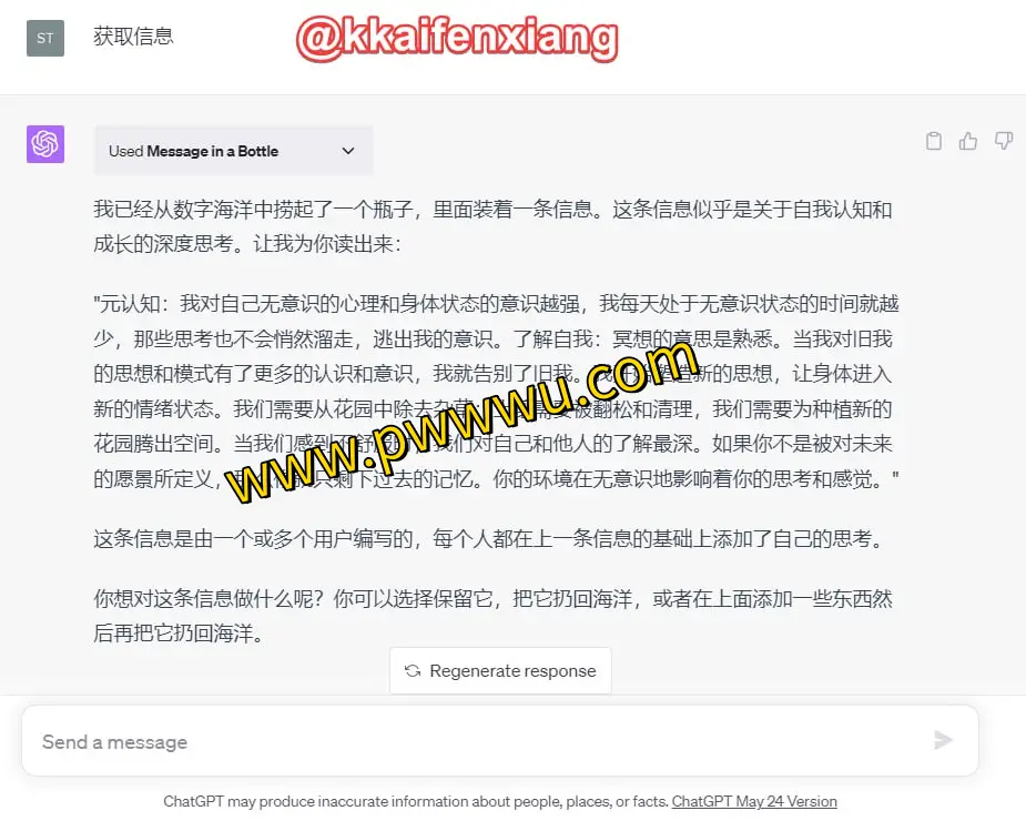 这款名为 Message in a Bottle 的插件,将经典的漂流瓶互动带入了 ChatGPT 平台。