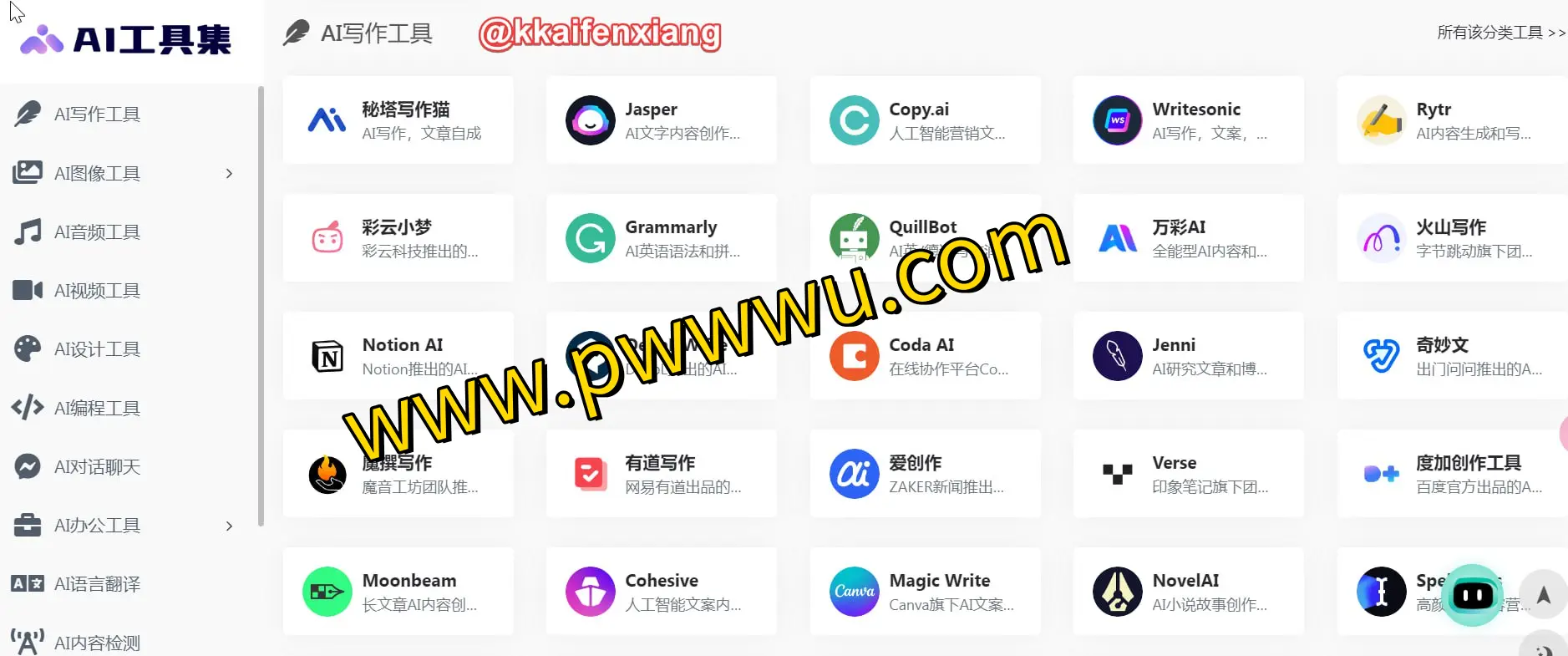 AI-Bot智能导航站 这是一个专注于收录各类智能技术资源的导航平台。网站按照功能领域进行系统分类,用户可通过左侧导航栏快速定位所需工具类型。 核心特色 涵盖写作、图像、音频、视频等创作工具 包含编程开发、办公辅助等专业工具 提供多语言翻译等实用工具分类 持续更新最新技术资源 分享地址: https://ai-bot.cn/