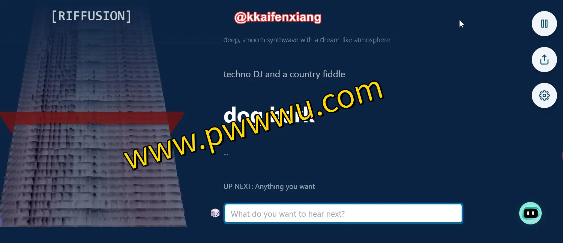 作为一个开源且免费的音乐生成工具,Riffusion基于改进版的稳定扩散模型构建。其独特之处在于将音频信息转换为频谱图进行学习——这种视觉图表能够清晰展示声音频率随时间变化的强度分布。系统通过对频谱图像进行高精度处理,最终将其还原为具有丰富细节的音频波形。