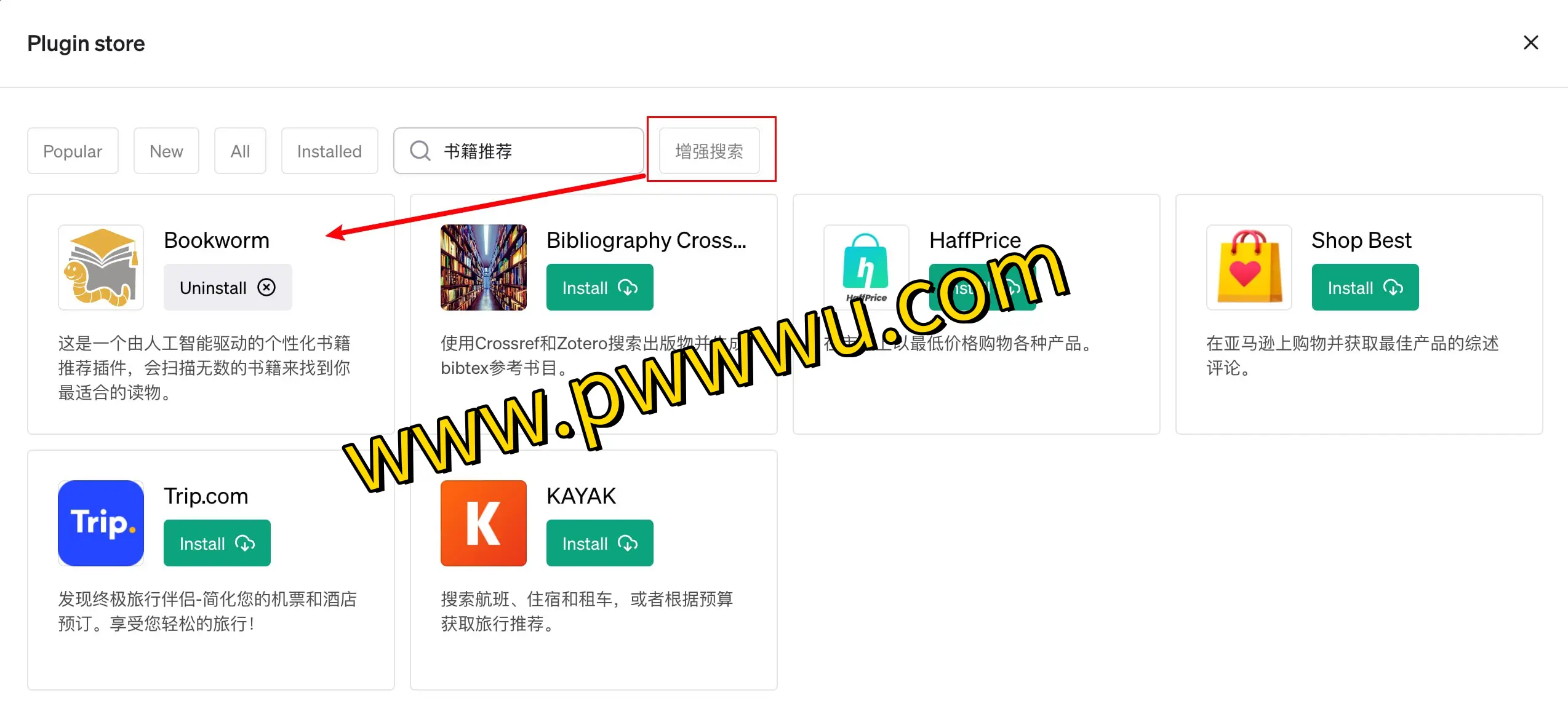 在ChatGPT官方尚未推出插件搜索功能时,该工具就已经实现了插件检索功能。随着官方逐步完善搜索机制,这个工具也同步升级为专门针对中文搜索的优化版本。