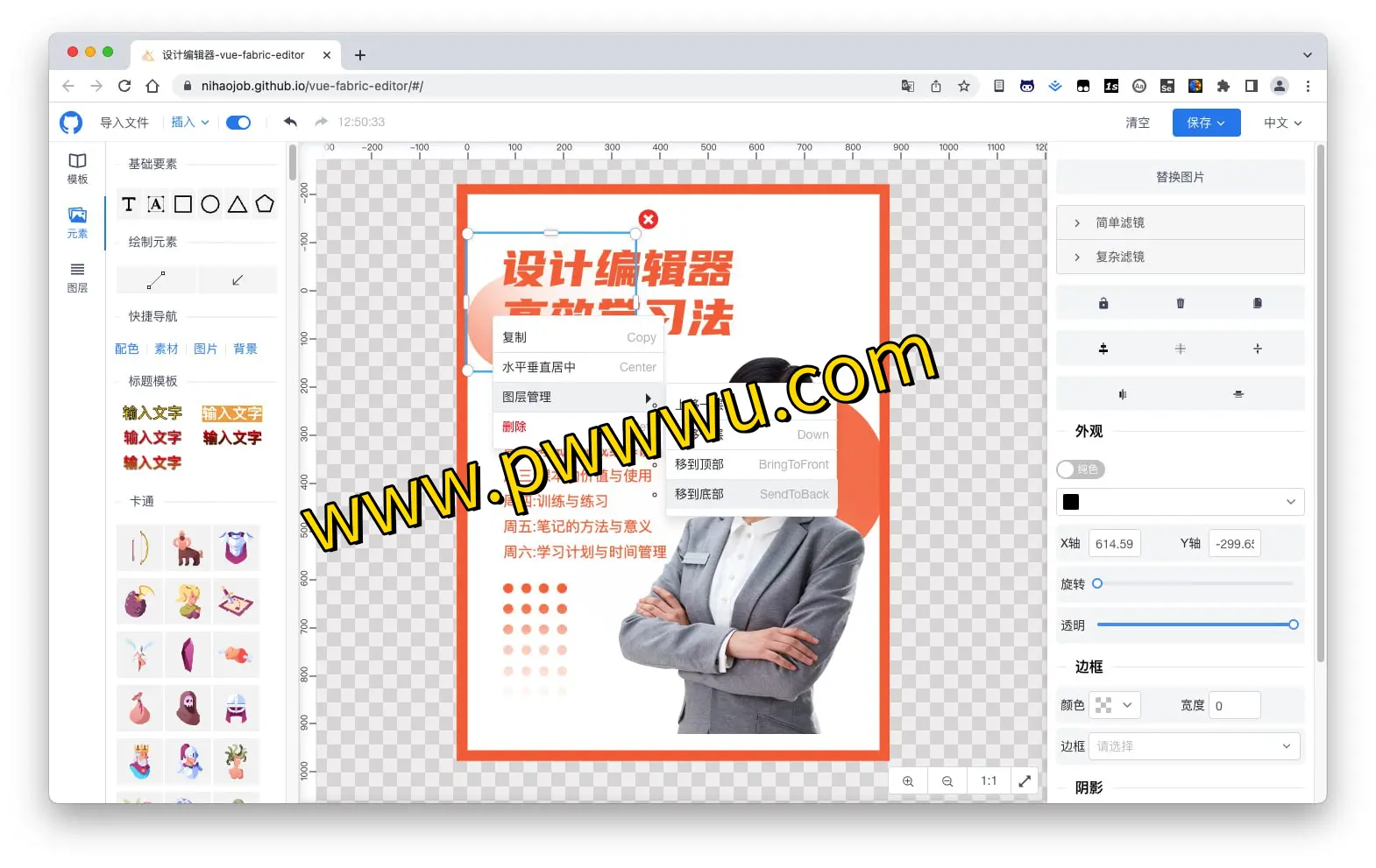 https://github.com/ikuaitu/vue-fabric-editor
