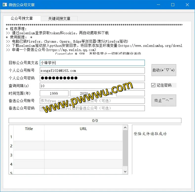 该程序基于Python开发,采用网络爬虫技术构建。通过模拟浏览器登录流程获取访问凭证,系统可自动完成文章内容的抓取与下载任务。特别值得一提的是,该工具支持断点续传功能,当采集过程因故中断时,能够从中断处继续执行,有效提升数据采集效率。