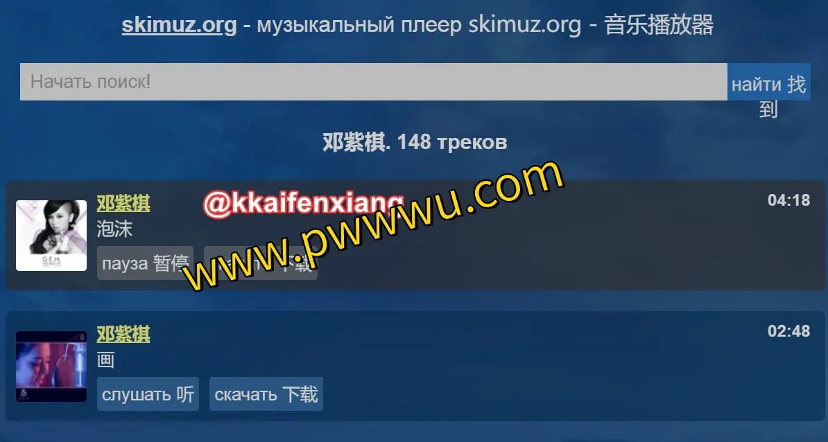 该平台虽然源自俄罗斯且界面为俄语显示,但这完全不影响用户享受音乐体验。通过搜索框直接输入歌手名称或歌曲标题即可快速检索目标音乐,支持包括中文在内的多种语言搜索。若需界面翻译,可使用浏览器自带的网页翻译工具进行实时转换。