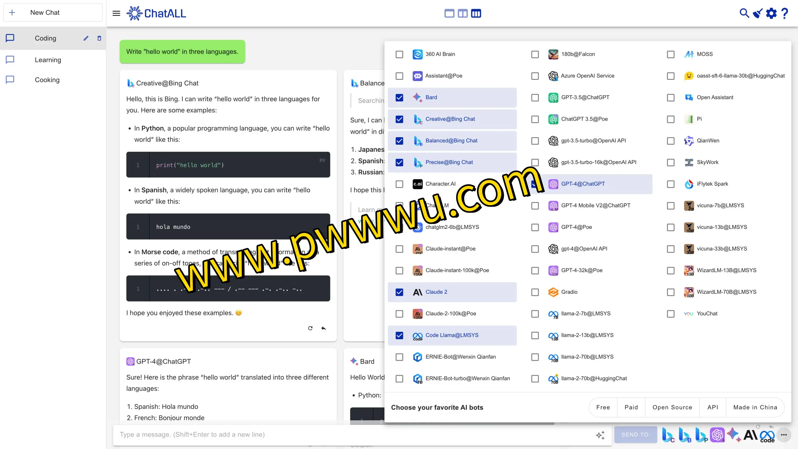 - 多机器人并行对话:可同时与多个智能助手进行交流,实时比较回复内容