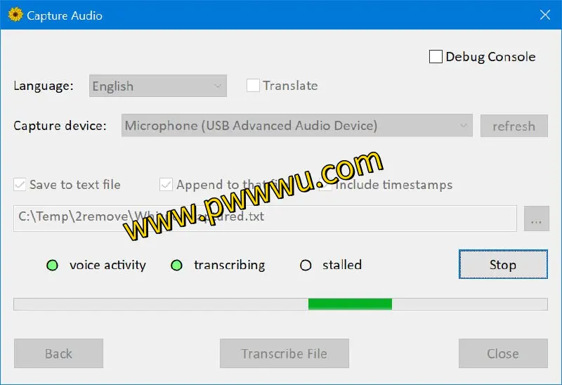 该程序支持多种硬件配置,用户可根据设备条件选择使用GPU加速或常规CPU运行模式。实时转换功能让用户能够即时获取文字转录结果,大大提升了工作效率。