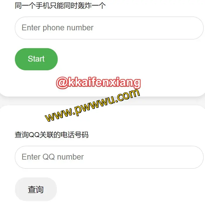 平台核心功能包括短信发送服务,用户输入手机号码即可进行操作。此外还提供社交账号关联查询功能,可查询社交账号绑定的手机号码信息。