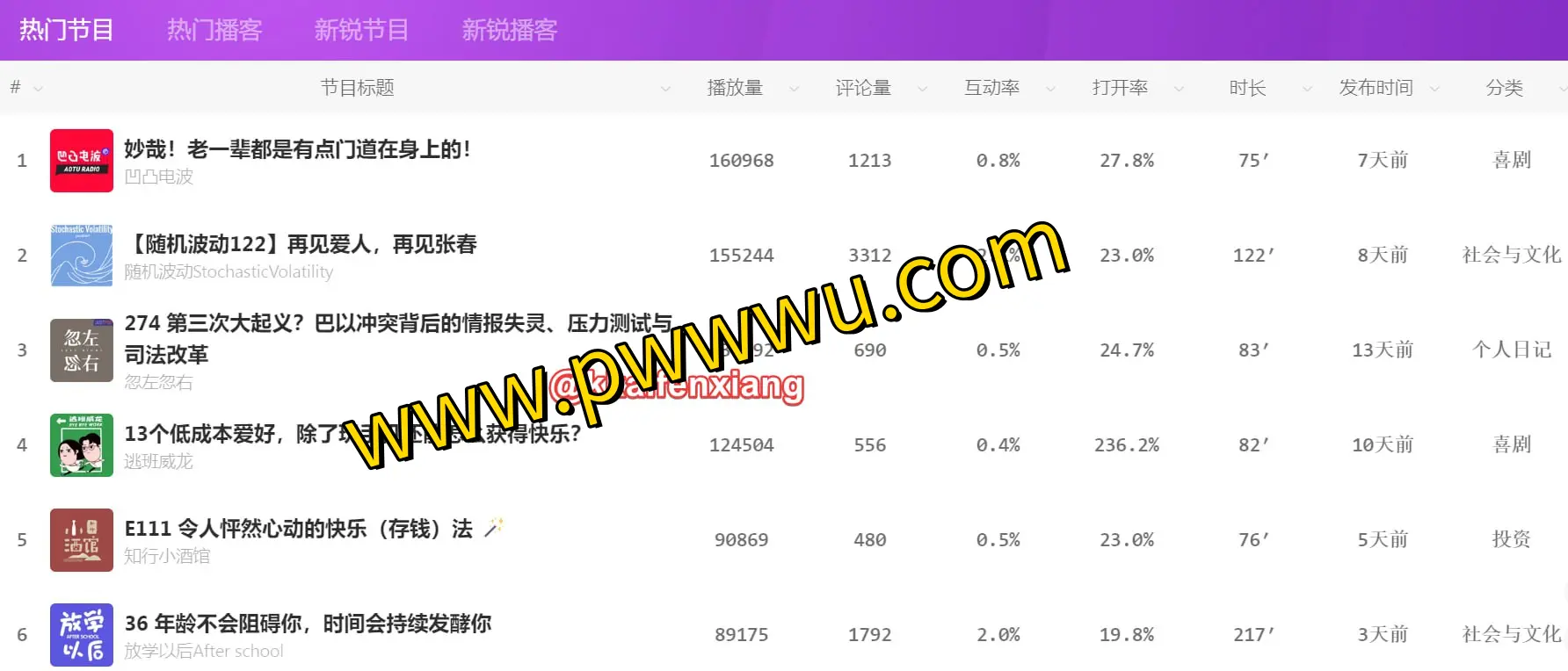 这是一个专注于中文播客推荐的平台,通过分析节目的播放数据来筛选优质内容。平台上收录的播客都具有较高的信息密度和收听价值,特别适合在驾驶途中或碎片时间欣赏。
