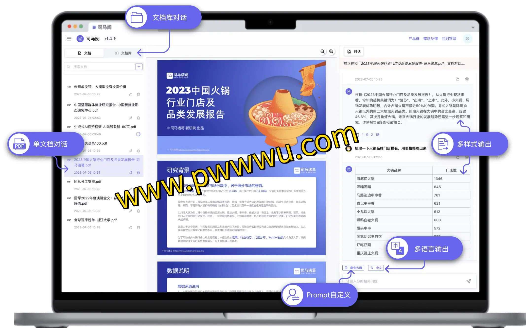 司马阅是一款融合人工智能与智能文档处理技术的阅读分析平台,能够高效地从结构复杂的PDF材料中提炼核心内容,并通过对话交互的方式,帮助用户灵活获取重要信息和创作启发。
