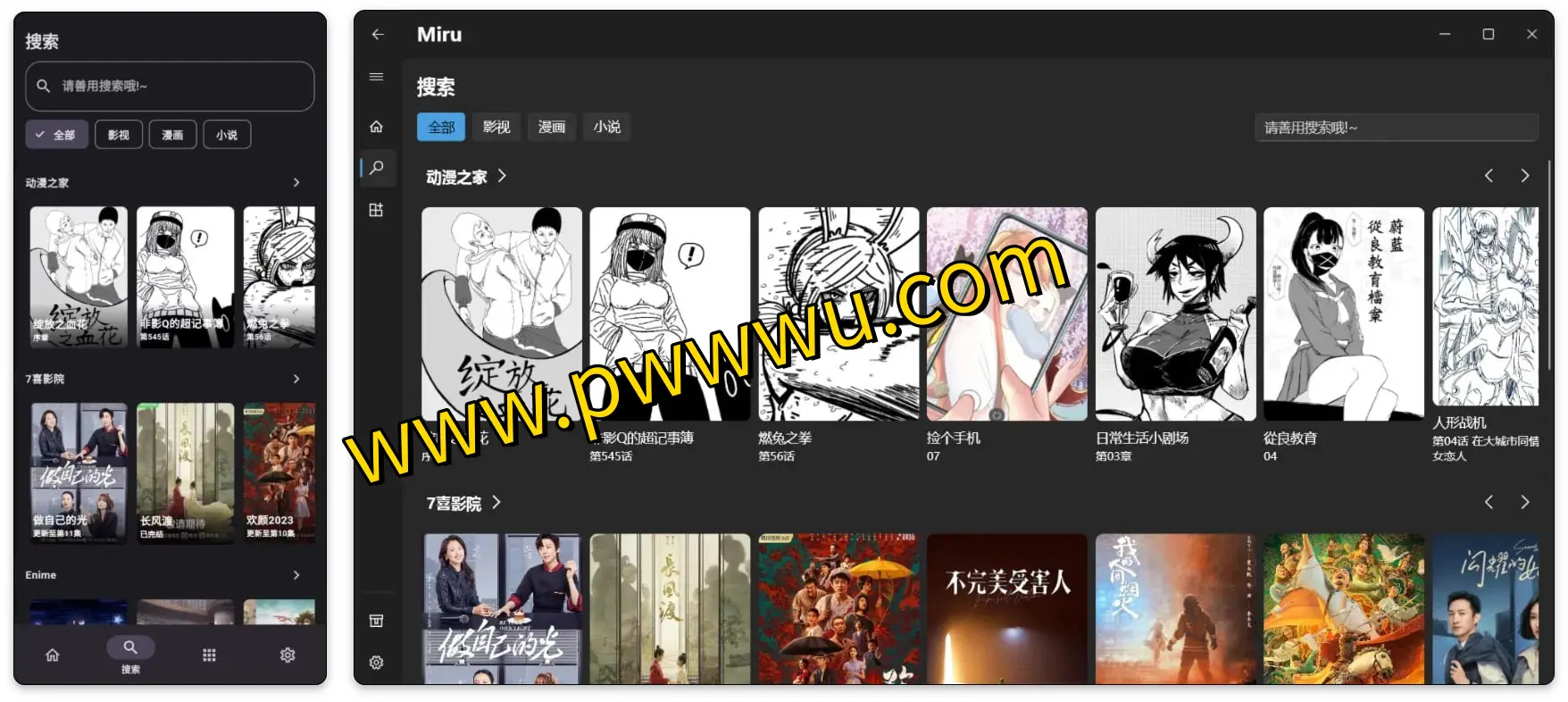 Miru是一款功能丰富的开源应用程序,支持小说和漫画阅读。该程序完全免费,通过扩展源技术兼容视频、图文和文学作品,适用于安卓系统、Windows操作系统及网页端。