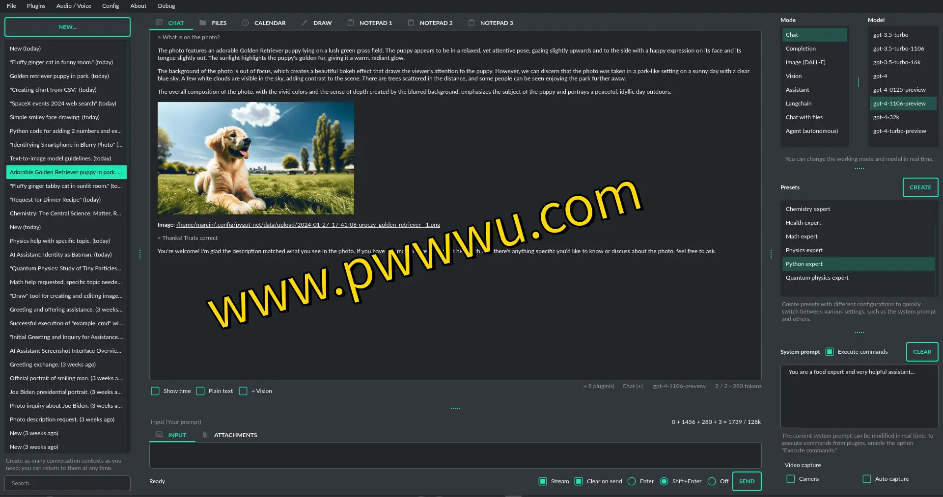 这是一款集成于桌面的智能辅助程序,能够直接与OpenAI研发的语言模型进行沟通,涵盖GPT-4、具备视觉识别能力的GPT-4版本以及GPT-3.5等多种型号。