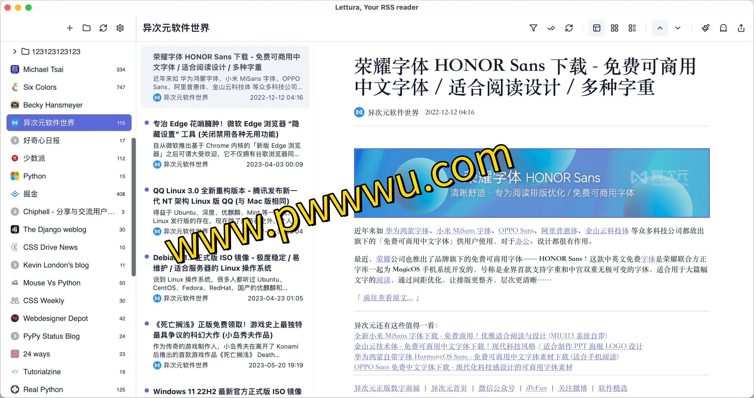 这款名为Lettura的软件是一款完全开源且免费提供的资讯订阅工具。它能够帮助用户集中管理各类信息源,目前完整兼容RSS和Atom两种主流订阅格式。根据开发规划,后续版本还将加入对JSON Feed格式的解析支持。