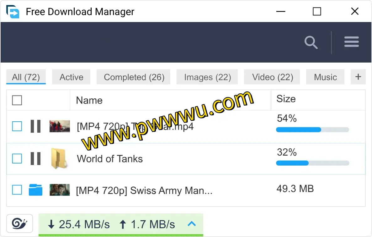 这是一款高效且设计现代的下载管理与加速工具,能够将文件获取速率提升高达十倍,并允许用户并行处理多个下载任务。