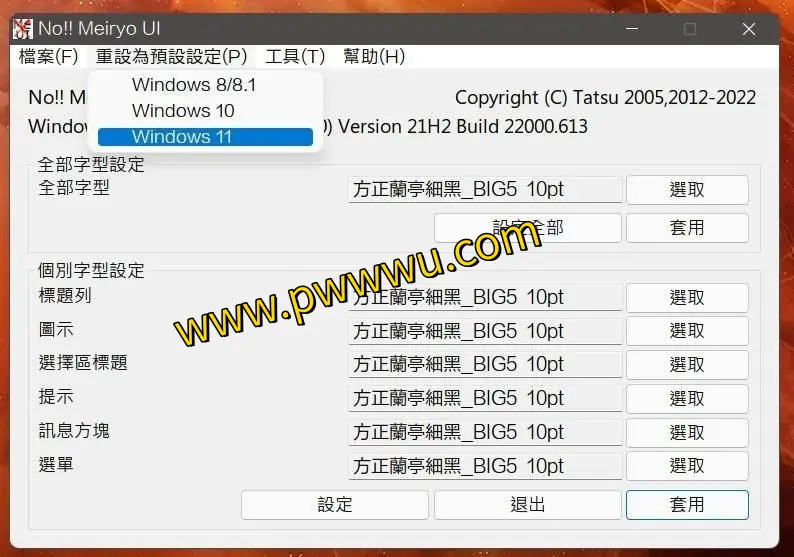 通过这款工具,用户可以根据个人喜好更换系统各个组成部分的字体样式,包括窗口标题栏、菜单栏、对话框等界面元素。